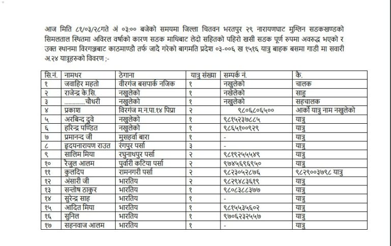 यी हुन् त्रिशूली नदीमा बस खस्दा बेपत्ता भएका यात्रुहरु, ५४ मध्ये १७ को पहिचान खुल्यो (सूचीसहित)