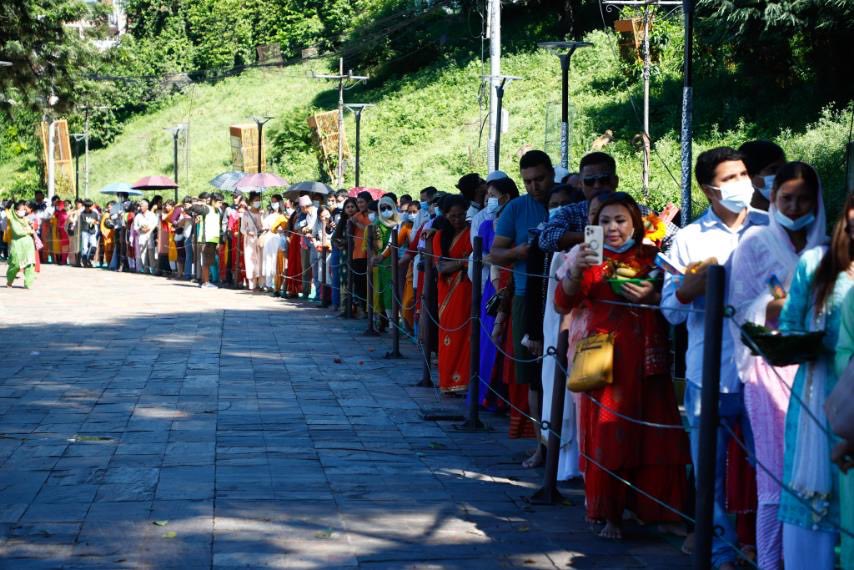 काठमाडौं। आराध्यदेव भगवान् पशुपतिनाथ मन्दिरमा साउनको पहिलो दिन आज बिहानैदेखि भक्तजनको घुइँचो लागेको छ । अहिले पशुपतिनाथमा भक्तजन पूजाअर्चनाका लागि लाइन लागेका छन् । साउन महिनाभर देशभरका शिवालयसहित पशुपतिनाथ मन्दिरमा भक्तजनको विशेष पूजाआजा हुने गर्दछ । पशुपति क्षेत्र विकास कोषका प्रवक्ता रेवतीरमण अधिकारीले पशुपतिनाथ मन्दिरमा साउनको पहिलो दिन आज बिहानैदेखि भक्तजनको पूजाआजाका लागि घुइँचो लागेको जानकारी दिए ।