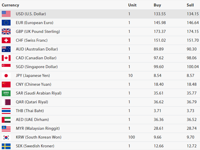 शुक्रबार अमेरिकी डलर एकको खरिद दर १३३.५५ रुपैयाँ रहेको छ भने बिक्री दर १३४.१५ रुपैयाँ रहेको छ । त्यस्तै युरोपियन युरो एकको खरिद दर १४५.९८ रुपैयाँ रहेको छ भने बिक्री दर १४६.६४ रुपैयाँ रहेको छ ।