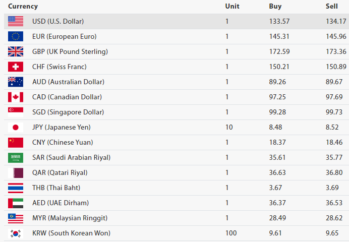 काठमाडौं । नेपाल राष्ट्र बैंकले आजका लागि विदेशी मुद्राको विनिमयदर तोकेको छ । राष्ट्र बैंकका अनुसार आज (सोमबार) अमेरिकी डलर एकको खरिद दर १३३ रुपैयाँ ५७ पैसा र बिक्री दर १३४ रुपैयाँ १७ पैसा रहेका] छ ।