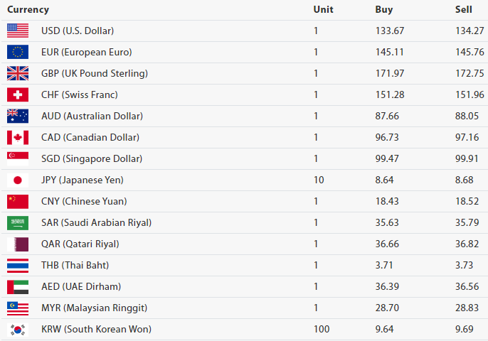 राष्ट्र बैंकका अनुसार आज अमेरिकी डलर एकको खरिद दर १३३.६७ रुपैयाँ रहेको छ भने बिक्री दर १३४.२७ रुपैयाँ रहेको छ ।