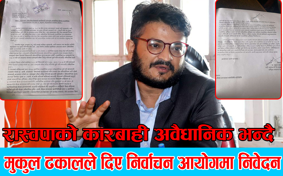 काठमाडौं । राष्ट्रिय स्वतन्त्र पार्टी (रास्वपा) को केन्द्रीय सदस्यबाटसमेत निलम्बनमा परेका मुकुल ढकालले आफूमाथि भएको कारबाही अवैधानिक भन्दै निर्वाचन आयोगमा निवेदन दिएका छन् ।