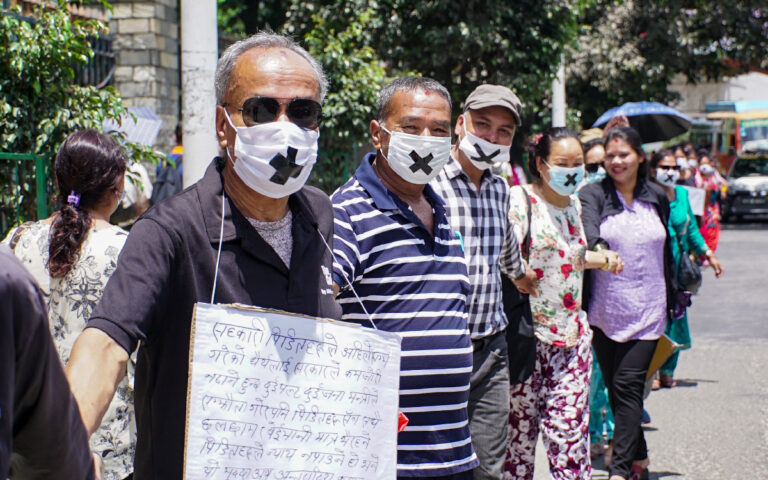 सहकारी बचतकर्ता संरक्षण राष्ट्रिय अभियान (महासंघ)ले रत्नपार्क क्षेत्रमा मानव साङ्लोसहित प्रदर्शन गर्ने र हस्ताक्षर अभियान पनि चलाउने निर्णय गरेको थियो । सोही निर्णय अनुसार सहकारी पीडितहरू मुखमा टेप लगाएर प्रदर्शनमा सहभागी छन् ।
