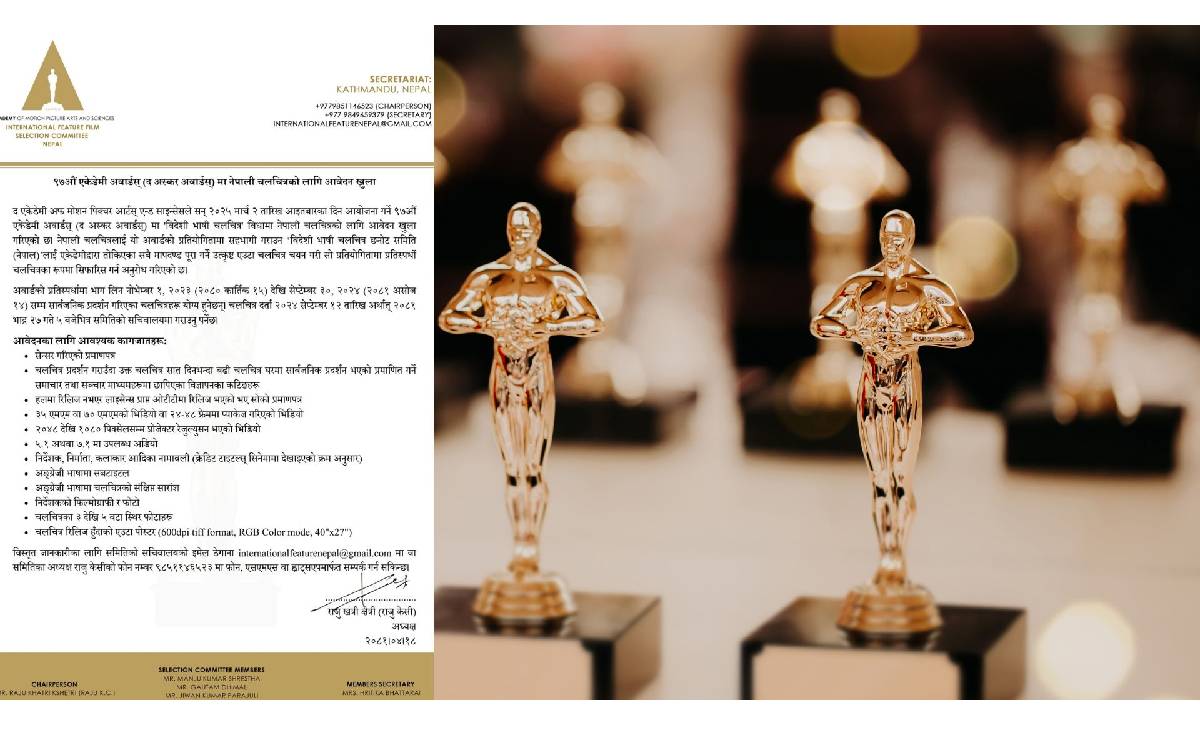मार्च २ तारिख आइतबारका दिन आयोजना हुने उक्त अवार्डको प्रतियोगितामा नेपाली चलचित्रलाई सहभागी गराउन ‘विदेशी भाषी चलचित्र छनोट समिति (नेपाल)’लाई एकेडेमीद्वारा तोकिएका सबै मापदण्ड पुग्ने एउटा उत्कृष्ट चलचित्र छनोट गरी सो प्रतियोगितामा प्रतिस्पर्धी चलचित्रका रूपमा सिफारिस गरी जानकारी गराउन द एकेडेमी अफ मोशन पिक्चर आर्टस् एन्ड साइन्सेसबाट अनुरोध पत्र प्राप्त भएकाले ९७औँ अस्कर अवार्ड प्रतियोगितामा सामेल हुन चाहने सबै नेपाली चलचित्र निर्देशक र निर्माताहरूलाई यस समितिको सचिवालयमा दर्ता गराउन आह्वान गरिएको हो ।