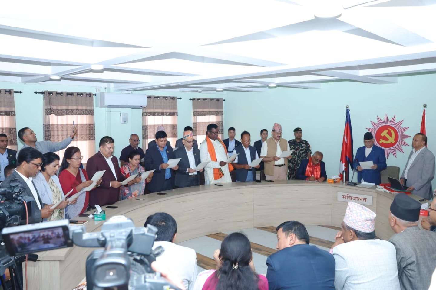 काठमाडौं । नेकपा एमालेका मनोनीत पदाधिकारी तथा केन्द्रीय सदस्यहरूले शपथ ग्रहण गरेका छन् ।