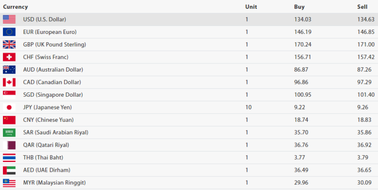 आज अमेरिकी डलर एकको खरिद दर १३४ रुपैयाँ ०३ पैसा र बिक्री दर १३४ रुपैयाँ ६३ पैसा पुगेको छ ।
