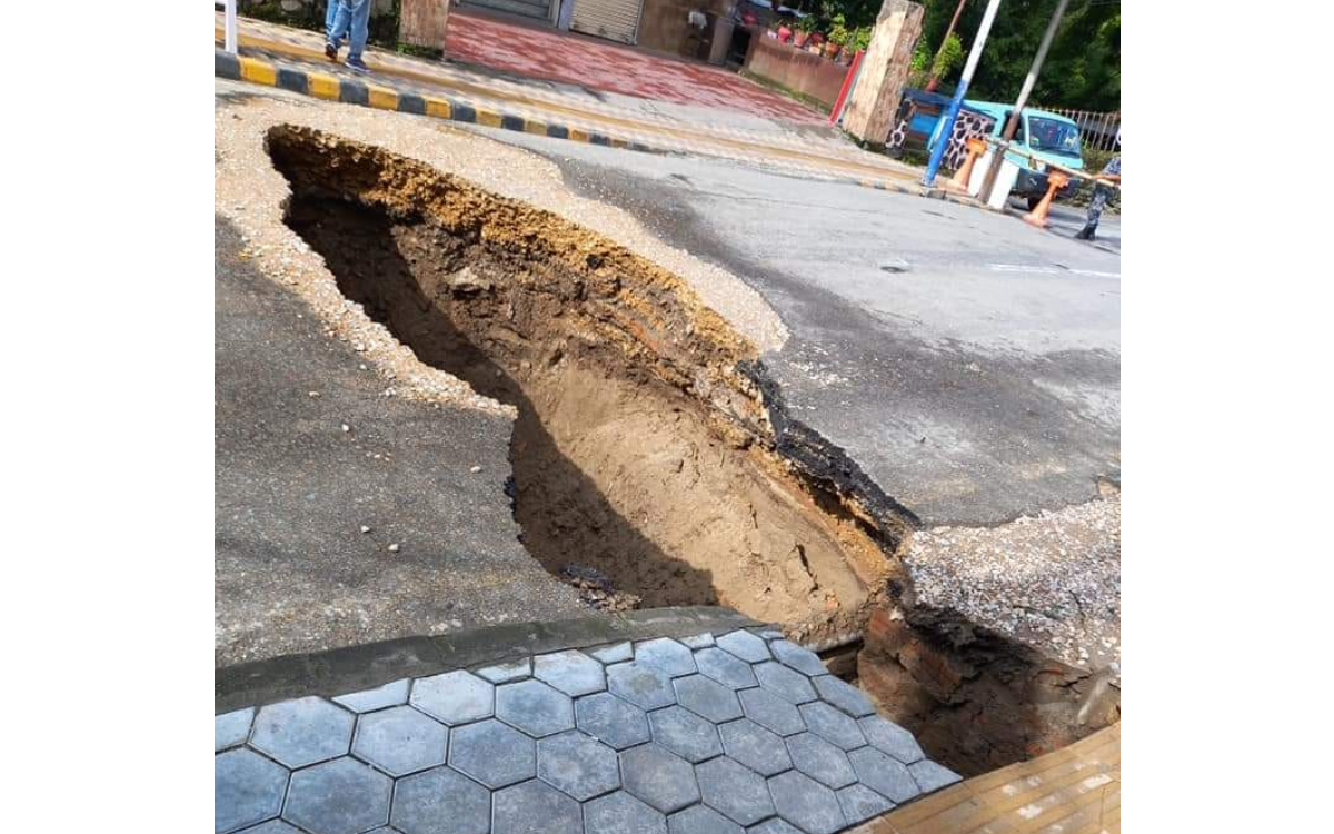 दरबारमार्गस्थित महेन्द्र शालिकबाट काठमाडौं महानगरपालिकाको कार्यालय जाने बाटोमा सडक भासिएको हो ।