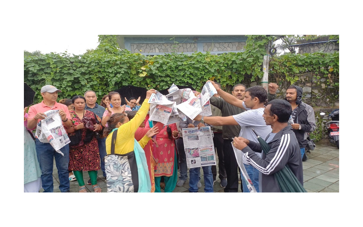 पोखरा । सुर्यदर्शन सहकारी पीडितले पोखराबाट प्रकाशित हुँदै आएको समाधान दैनिक पत्रिका जलाएका छन् । कास्की जिल्ला अदालत अगाडी र वडा प्रहरी कार्यालय बैदामको ढोकामै उभिएर सुर्यदर्शन सहकारी पीडितले पोखराबाट प्रकाशित हुँदै आएको समाधान दैनिक पत्रिका जलाएका हुन् ।