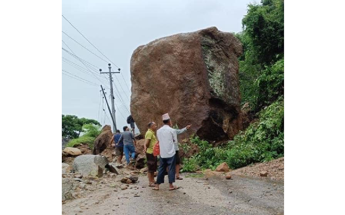 जिल्ला ट्राफिक प्रहरी कार्यालयका प्रमुख जेजङ्ग कार्कीका अनुसार नुवाकोटको बेलकोटगढी नगरपालिका–८ स्थित ठूलोखोला नजिक सडकमा खसेको ठूलो ढुङ्गासहितको पहिरोले ‘डेडिकेटेड डबल लेन’को सडक पूर्ण रूपमा बन्द भएको छ । देवीघाटबाट महादेवफाँट हुँदै गल्छी आवतजावत गर्ने सडक पूर्ण रूपमा अवरुद्ध भएको छ ।
