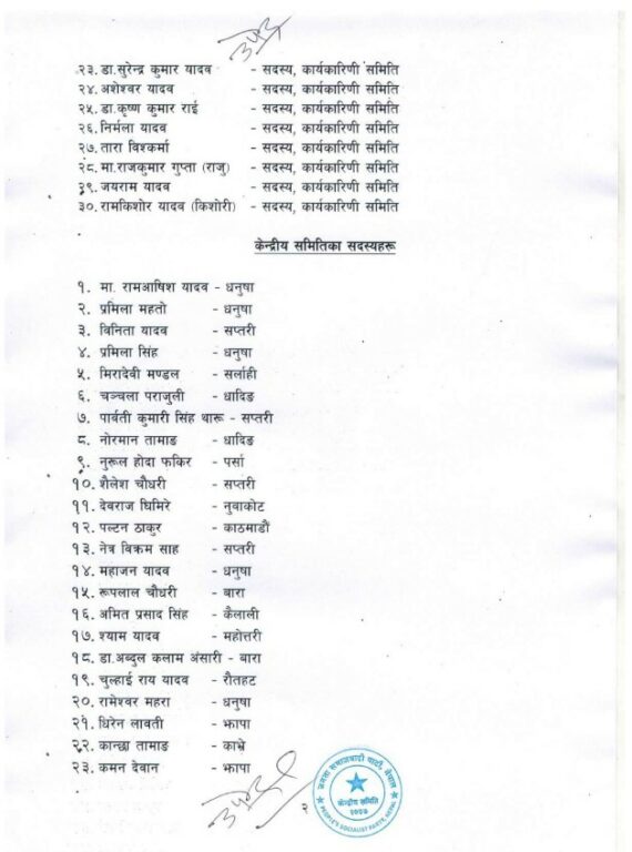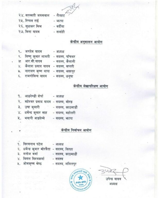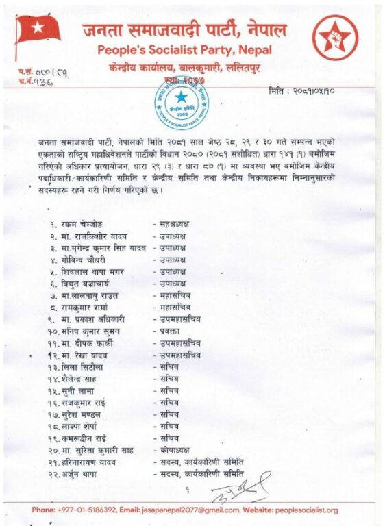 जसपा नेपालले साढे दुई महिनापछि छान्यो पदाधिकारी, रकम चेम्जोङ दोस्रो वरीयतामा (सूचीसहित)