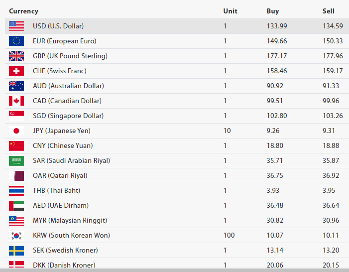 राष्ट्र बैंकका अनुसार आज अमेरिकी डलर एकको खरिद दर १३३ रुपैयाँ ९९ पैसा र बिक्री दर १३४ रुपैयाँ ५९ पैसा पुगेको छ । त्यस्तै, युरो एकको खरिद दर १४९ रुपैयाँ ६६ पैसा र बिक्री दर १५० रुपैयाँ ३३ पैसा रहेको छ।