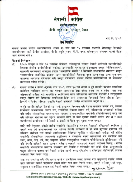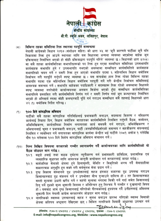 काठमाडौं । नेपाली कांग्रेसले संगठन सुधारका लागि १०० दिने सांगठनिक अभियान चलाउने भएको छ ।