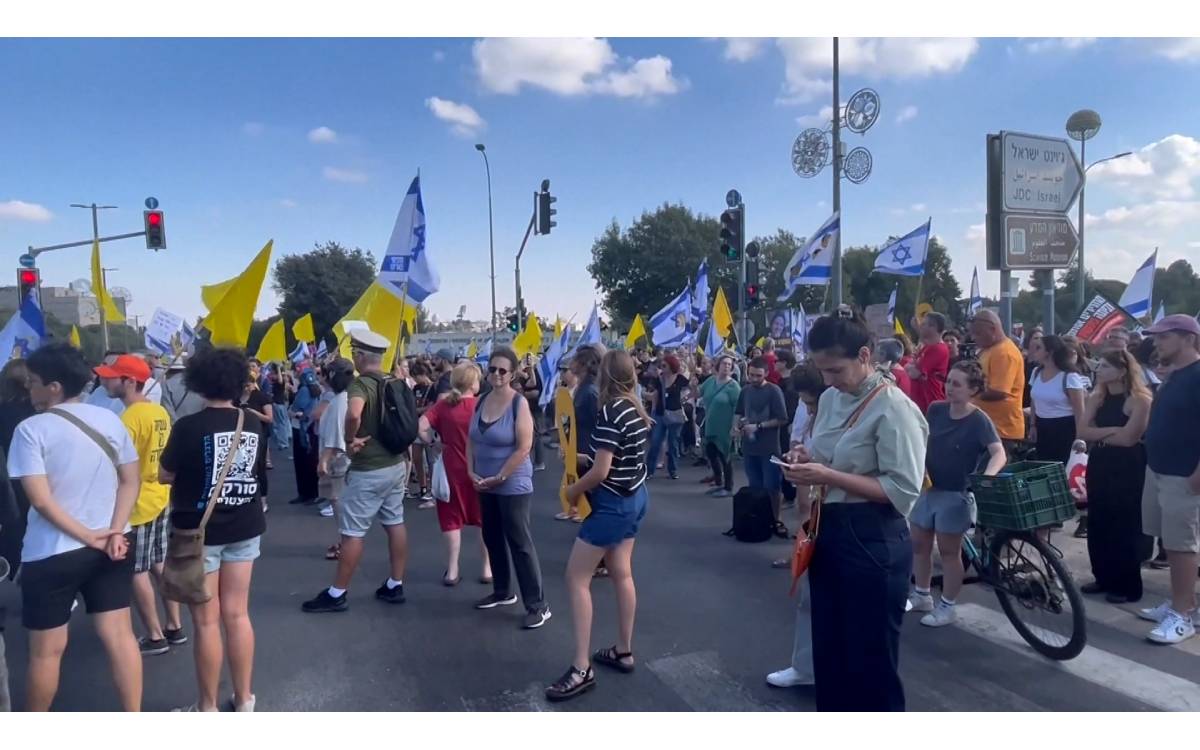 ब्यानर र बन्धकहरूको तस्बिर बोकेर नारा लगाउँदै आन्दोलनकारीहरूले पश्चिम जेरुसेलममा इजरायली संसद् भवन अगाडि प्रदर्शन गरेका थिए । प्रदर्शनकारीहरूले इजरायली सरकारलाई कारबाही गर्न र हमाससँग सम्झौता गर्न माग गरे ।