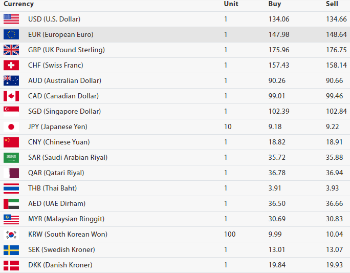 त्यसैगरी, मलेसियन रिङ्गेट एकको खरिददर ३० रुपैयाँ ६९ पैसा र बिक्रीदर ३० रुपैयाँ ८३ पैसा, साउथ कोरियन वन एक सयको खरिददर ९ रुपैयाँ ९९ पैसा र बिक्रीदर १० रुपैयाँ ०४ पैसा, स्वीडिस क्रोनर एकको खरिददर १३ रुपैयाँ ०१ पैसा र बिक्रीदर १३ रुपैयाँ ०७ पैसा र डेनिस क्रोनर एकको खरिददर १९ रुपैयाँ ८४ पैसा र बिक्रीदर १९ रुपैयाँ ९३ पैसा छ ।