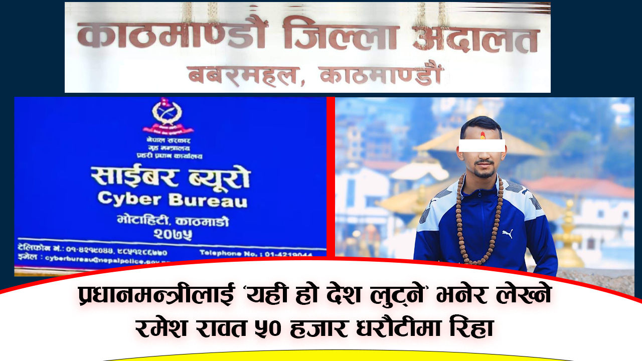 काठमाडौं । प्रधानमन्त्री केपी शर्मा ओली लगायतका नेताहरूलाई सामाजिक सञ्जाल फेसबुकमा जथाभाबी लेख्ने रमेश बहादुर रावत धरौटीमा थुनामुक्त भएका छन् । काठमाडौं जिल्ला अदालतले रावतलाई मङ्गलवार ५० हजार धरौटीमा छोड्ने आदेश दिएको हो ।