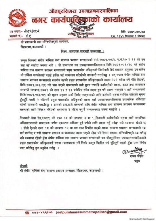 एमालेको ‘कोपभाजन’ मा जीतपुर सिमराकी प्रशासकीय अधिकृत, अमेरिका भ्रमण रद्ध