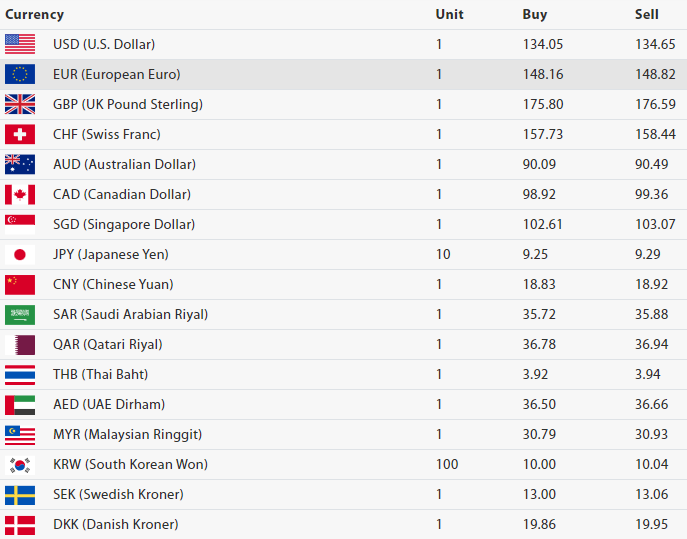 राष्ट्र बैंकका अनुसार आज अमेरिकी डलर एकको खरिददर एक सय ३४ रुपैयाँ ०५ पैसा र बिक्रीदर एक सय ३४ रुपैयाँ ६५ पैसा, युरोपियन यूरो एकको खरिददर एक सय ४८ रुपैयाँ १६ पैसा र बिक्रीदर एक सय ४८ रुपैयाँ ८२ पैसा रहेको छ ।