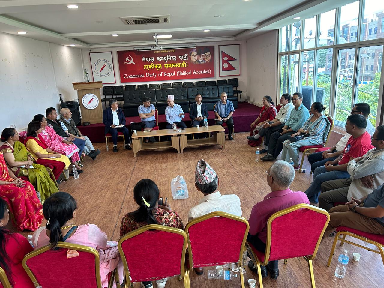 पार्टी अध्यक्ष माधवकुमार नेपालले नेताहरुसँग छलफल गर्दैै सो त्यसबारेमा छलफल गरेका हुन् ।