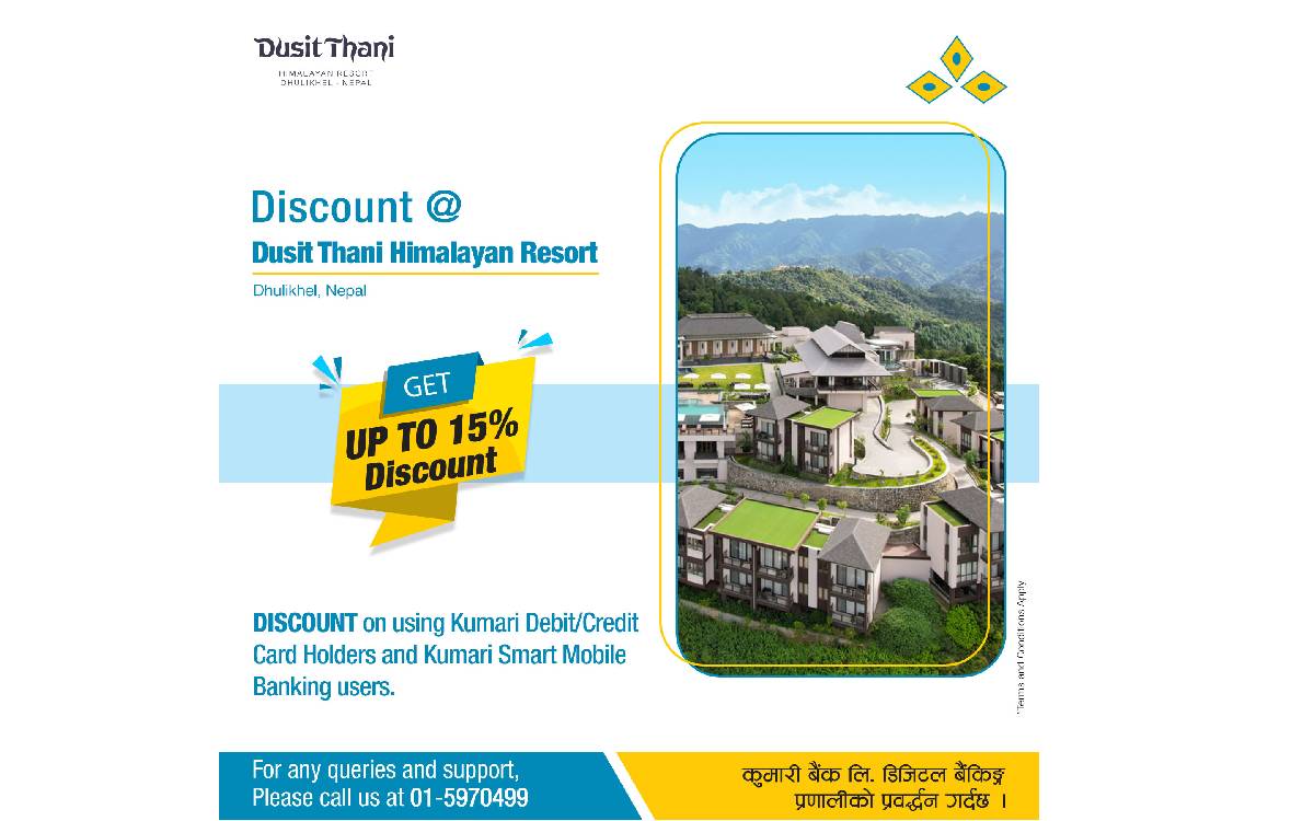 कुमारी बैंकका ग्राहकहरुलाई रिसोर्टबाट प्रदान गरिने विभिन्न सेवाहरुमा विशेष छुट प्रदान गर्ने सम्बन्धमा सम्झौता भएको हो ।