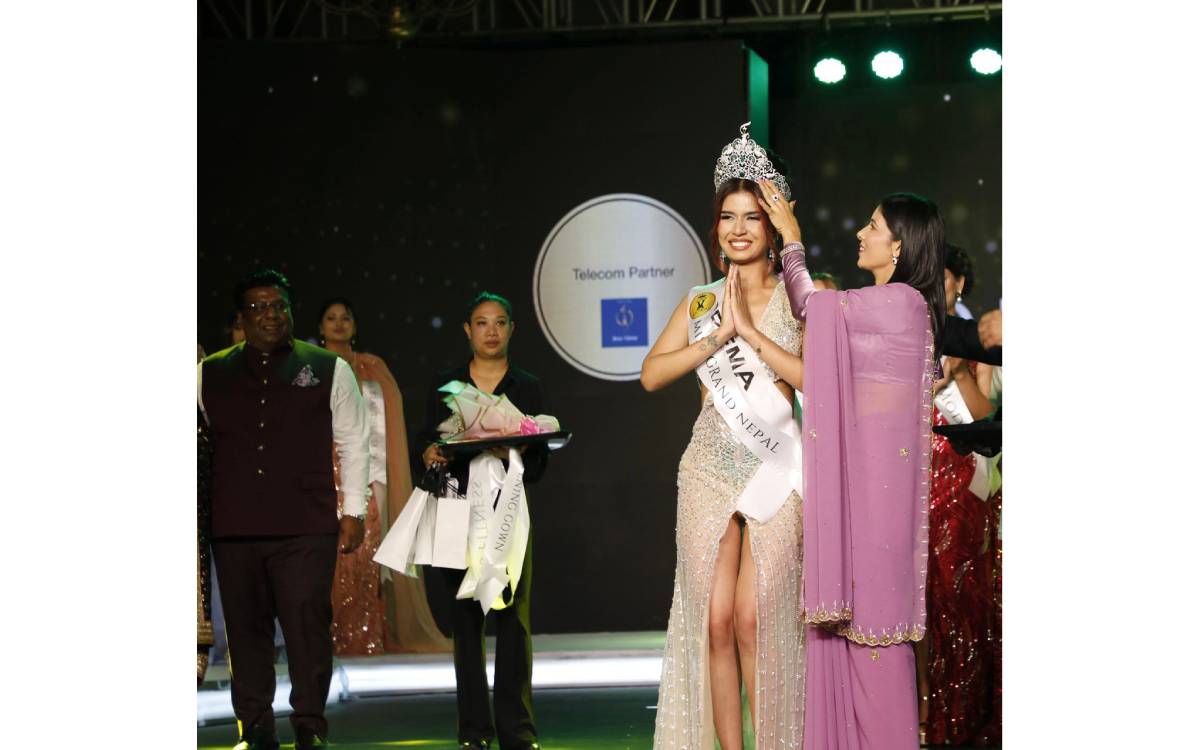 मिस विभाका इन्टरनेसनल डाइरेक्टर भूमि पाठकले विजेता प्रेमा लामगाढेलाई ताज पहिराइदिए ।