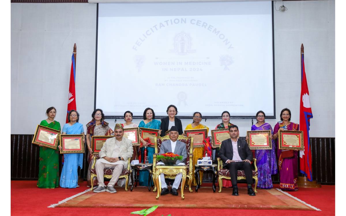 शुक्रबार नेपाल चिकित्सक संघद्वारा वुमेन इन मेडिसिन इन नेपाल २०२४ अन्तर्गत राष्ट्रपति भवन शीतल निवासमा आयोजित कार्यक्रममा राष्ट्रपति पौडेलले ती महिला चिकित्सकहरूलाई सम्मान गरेका हुन् ।