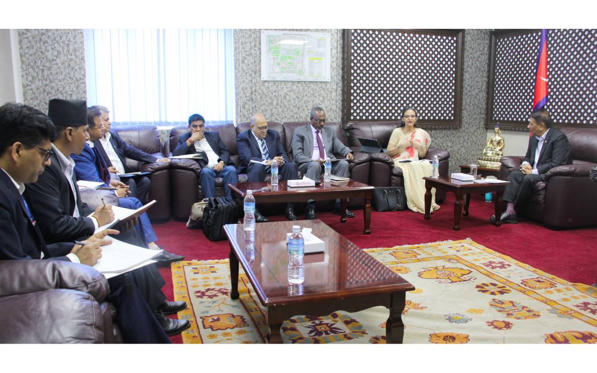 सहरी विकास मन्त्रालयमा सोमबार बिहान भएको भेटमा विश्व बैंकसँगको सहकार्यमा सहरी विकास मन्त्रालयअन्तर्गत सञ्चालिन नेपाल सहरी शासकीय तथा पूर्वाधार आयोजनाका विषयमा छलफल भएको थियो ।