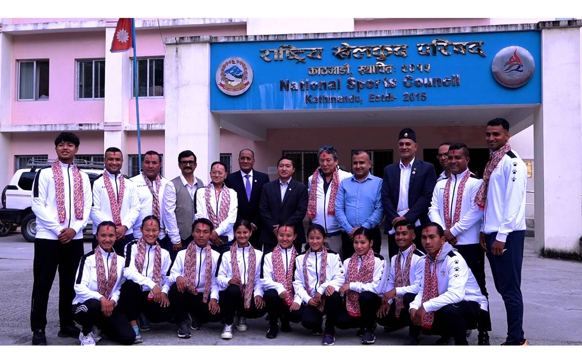 सोमबार राष्ट्रिय खेलकुद परिषद्को सभा हलमा खेलकुद परिषद्का सदस्य सचिव टंकलाल घिसिङले कार्यक्रमको आयोजन गरी २०औँ एसियाली कराते च्याम्पियनसिपमा सहभागी हुने नेपाली कराते टोलीको बिदाइ गरेका हुन् ।