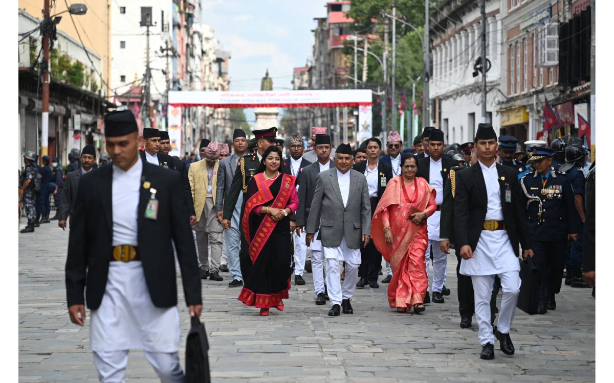 काठमाडौं । राष्ट्रपति रामचन्द्र पौडेलले इन्द्रजात्रा अवलोकन गरेका छन् । सांस्कृतिक एवं ऐतिहासिक पर्व इन्द्रजात्राका अवसरमा राष्ट्रपति पौडेल जुद्ध सालिकदेखि पैदल यात्रामार्फत हनुमानढोका दरबार क्षेत्रस्थित गद्दी बैठकसम्म पुगेर जात्रा अवलोकन गरेका हुन् ।