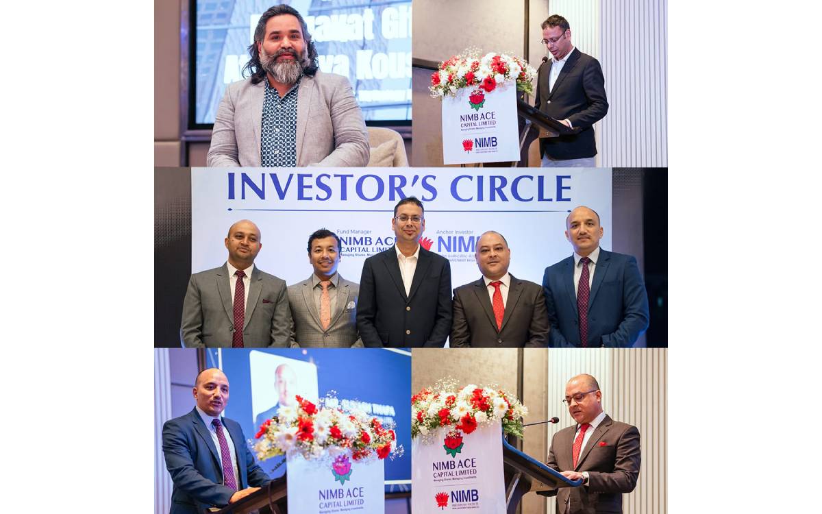 काठमाडाैं । एनआइएमबि एस क्यापिटलले आफ्नो पहिलो ‘इन्भेस्टर्स सर्कल’ सफलापूर्वक सम्पन्न गरेको छ । ‘नेपालमा प्राइभेट  इक्विटी लगानीको परिदृश्य’ विषयमा केन्द्रित भएर क्यापिटलले हिल्टन काठमाडौंमा ‘इन्भेस्टर्स सर्कल’ सम्पन्न गरेको हो ।