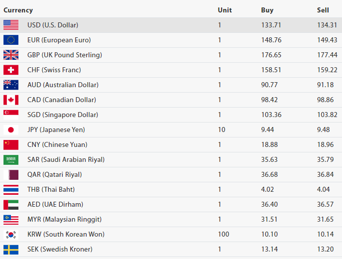 राष्ट्र बैंकका अनुसार अमेरिकी डलर एकको खरिददर एक सय ३३ रुपैयाँ ७१ पैसा र बिक्रीदर एक सय ३४ रुपैयाँ ३१ पैसा कायम भएको छ ।