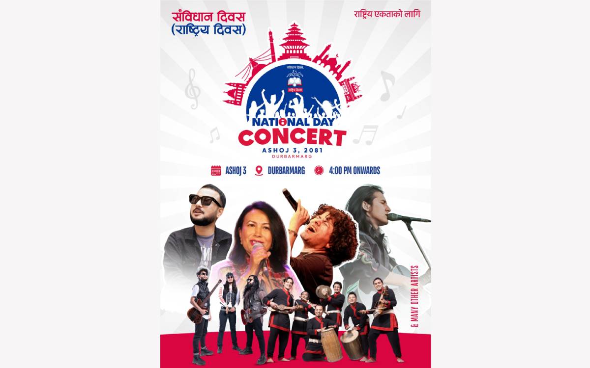 सरकारले ‘असोज ३ गते दिउँसो ४ बजे दरबारमार्ग जाऔं, नागरिक स्तरबाट आयोजित नेशनल डे कन्सर्टमा सहभागी बनौं’ भन्ने म्यासेज मोबाइलमार्फत पठाएर निमन्त्रणा दिएको हो । आज अपराह्न ५ बजेदेखि दरबारमार्गमा कन्सर्ट सुरू हुनेछ । कन्सर्ट सुरु हुनुअघि नै ४ बजेदेखि नै विभिन्न फुड स्टलहरू सञ्चालनमा आउने छन् । प्रधानमन्त्री केपी शर्मा ओली कन्सर्टमा सअभागी हुन बेलुकी साढे ६ बजे दरबारमार्ग जाने कार्यक्रम रहेको प्रधानमन्त्रीको सचिवालयले जनाएको छ ।