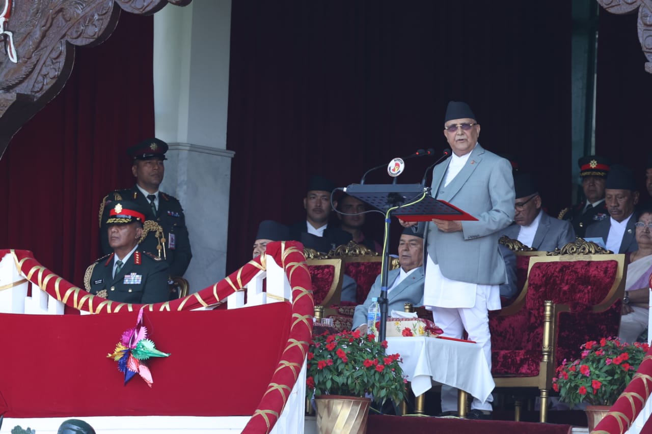 आज सरकारले सैनिक मञ्च टुँडिखेलमा आयोजना गरेको संविधान तथा राष्ट्रिय दिवसको अवसरमा सम्बोधन गर्दै सो कुरा बताएका हुन् ।
