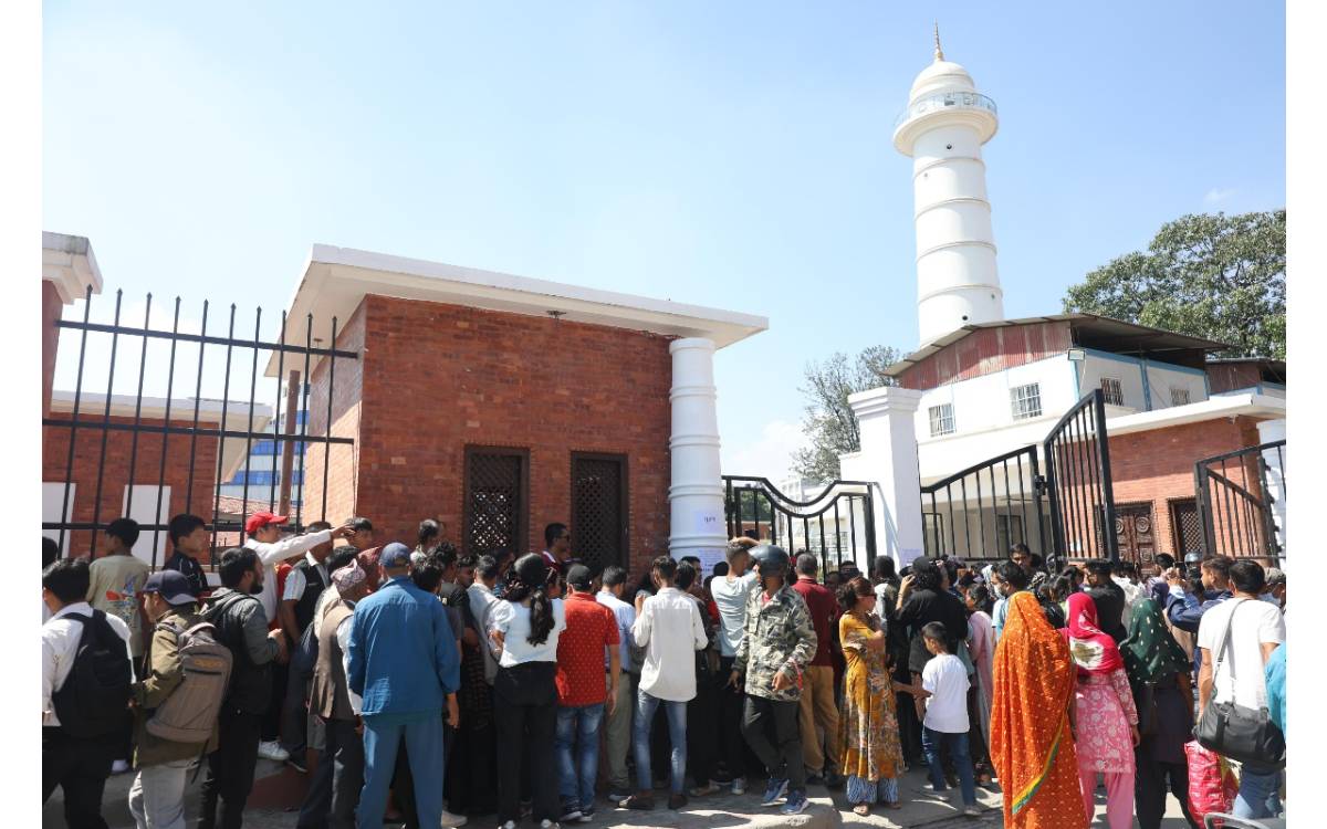 काठमाडौं । आजदेखि सर्वसाधारणका लागि धरहरा खुला गरिएसँगै चढ्न आउनेको घुइँचो लागेको छ । शुल्क निर्धारण नभएसम्मका लागि संविधान दिवसको अवसर पारेर आजदेखि निःशुल्क रूपमा खुला गरिएपछि चढ्न आउनेको घुइँचो लागेको हो ।