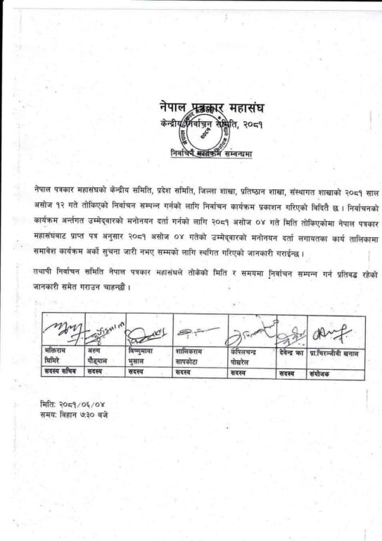 पत्रकार महासंघको निर्वाचन : अनिश्चितकालका लागि रोकियो मनोनयन