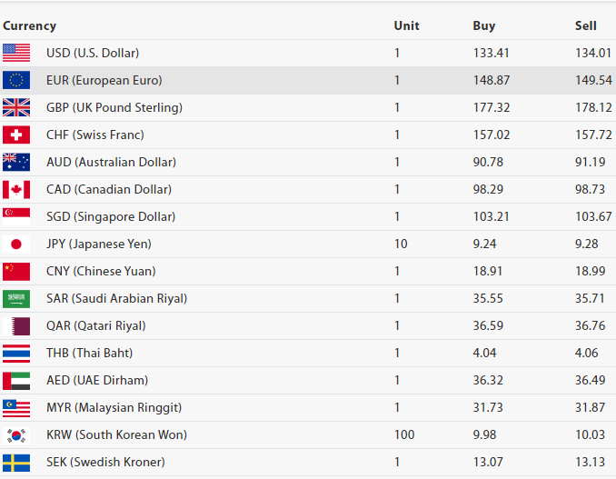 युरोपियन युरो एकको खरिद दर एक सय ४८ रुपैयाँ ८७ पैसा र बिक्री दर एक सय ४९ रुपैयाँ ५४ पैसा, युके पाउण्ड स्ट्रलिङ एकको खरिद दर एक सय ७७ रुपैयाँ ३२ पैसा र बिक्री दर एक सय ७८ रुपैयाँ १२ पैसा, स्वीस फ्रयाङ्क एकको खरिद दर एक सय ५७ रुपैयाँ ०२ पैसा र बिक्री दर एक सय ५७ रुपैयाँ ७२ पैसा कायम रहेको छ ।