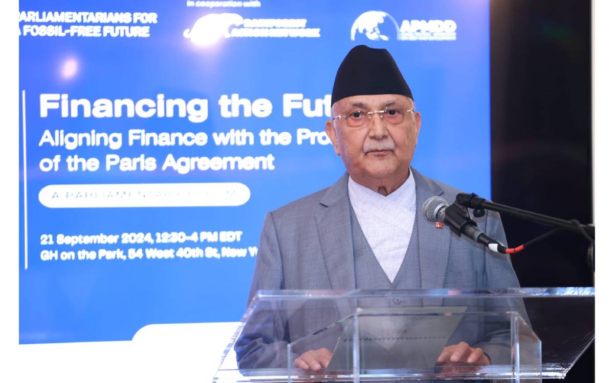 आइतबार नेपाली प्रतिनिधिमण्डलको नेतृत्व गर्दै संयुक्त राष्ट्रसंघको ७९औँ महासभामा भाग लिने क्रममा संयुक्त राज्य अमेरिकाको न्युयोर्क पुगेका प्रधानमन्त्री ओलीले स्थानीय समयअनुसार शनिबार दिउँसो आयोजित जीवाष्म इन्धनमुक्त संसदीय सञ्जाल (पार्लियामेन्टेरियन्स फर फोसिल फ्युल फ्रि) को कार्यक्रममा मुख्यवक्ताका रूपमा सम्बोधनका क्रममा यस्तो बताएका हुन् ।