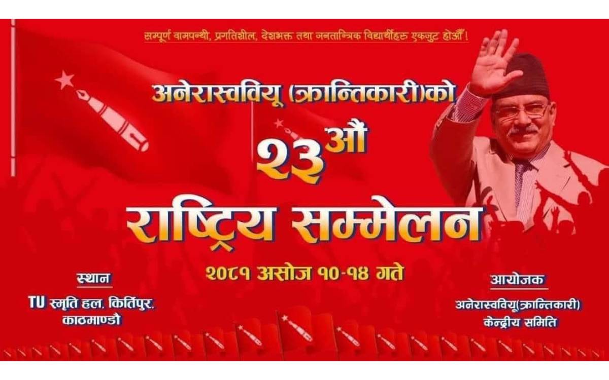 काठमाडौं । अनेरास्ववियू (क्रान्तिकारी)को २३औँ राष्ट्रिय सम्मलेन असोज १० गते देखि १४ गतेसम्म हुने भएको छ ।