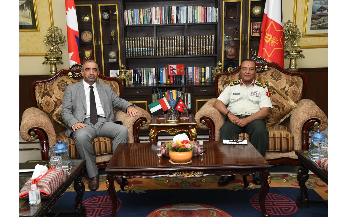 त्यस्तै, आजै प्रधान सेनापति र नेपालका लागि संयुक्त अरब इमिरेट्स (युएइ)का राजदूत अब्दुल्ला सईद मुबारक जारवान अल शम्सीबीच जंगी अड्डामा शिष्टाचार भेटघाट भएको छ।
