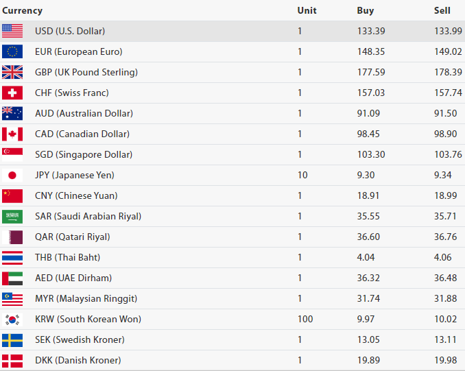 त्यसैगरी, साउदी अरेबियन रियाल एकको खरिद दर ३५ रुपैयाँ ५५ पैसा र बिक्री दर ३५ रुपैयाँ ७१ पैसा पुगेको छ भने कतारी रियाल एकको खरिद दर ३६ रुपैयाँ ६० पैसा र बिक्री दर ३६ रुपैयाँ ७६ पैसा कायम भएको छ ।
