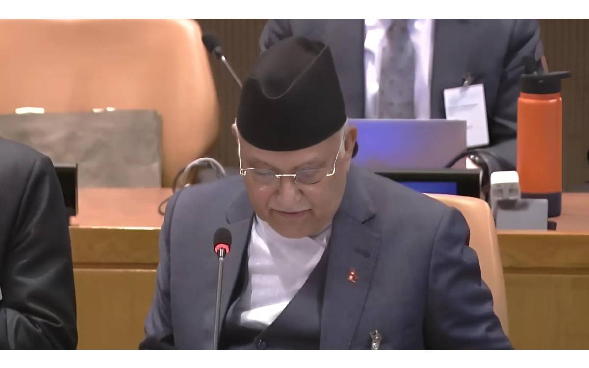 संयुक्त राष्ट्रसंघको ७९औँ महासभाअन्तर्गत उच्चस्तरीय प्लेनरी बैठकमा ‘समुद्री सतह वृद्धिका कारण उत्पन्न चुनौती’ विषयमा सम्बोधन गर्दै प्रधानमन्त्री ओलीले विश्वव्यापी कार्बन उत्सर्जनका कारण नेपालका हिमालहरू पग्लिएको बताए ।