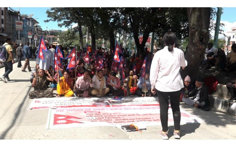 काठमाडौं । मेडिकल व्यवसायी दुर्गा प्रसाईँलाई रिहा गर्न माग गर्दै राष्ट्र, राष्ट्रियता, धर्म संस्कृति र नागरिक बचाउ अभियानको महिला विभागले विरोध प्रदर्शन गरेको छ ।