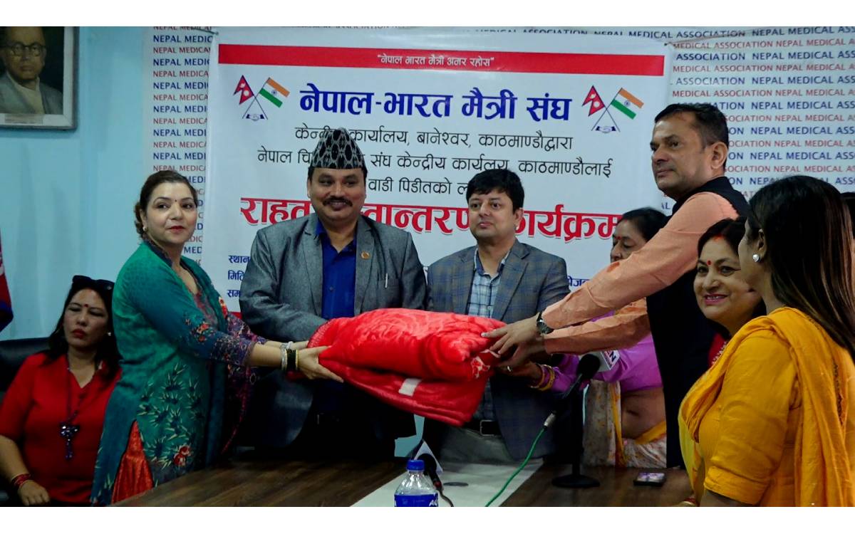 त्यस्तै चिकित्सक संघका अध्यक्ष डा.अनिल विक्रम कार्कीले नेपाल–भारतमैत्री संघले हस्तान्तरण गरेको राहत स्वास्थ्य सेवासँगै जोडेर पीडितलाई उपलब्ध गराउने जानकारी गराए ।