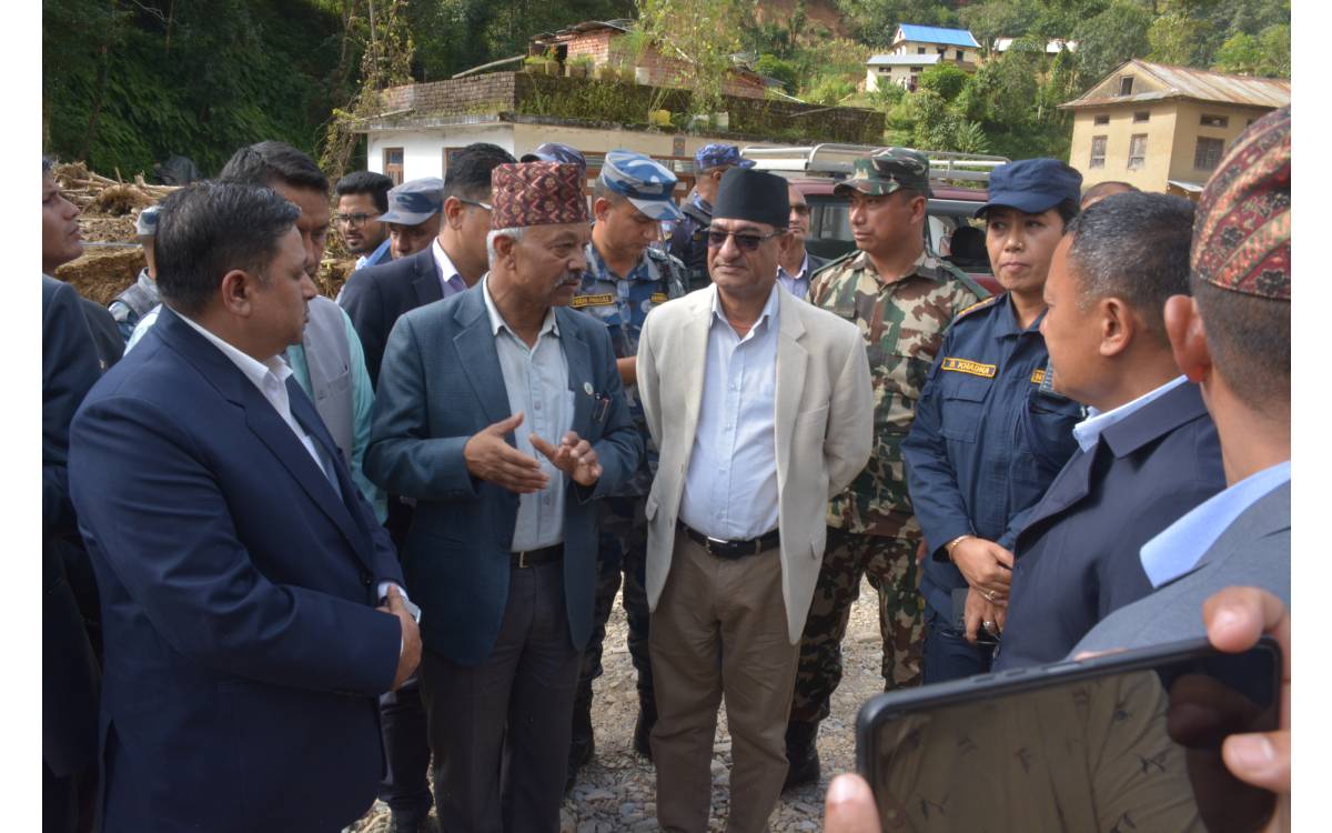 काभ्रेपलान्चोक । गृहमन्त्री रमेश लेखकद्वारा काभ्रेपलान्चोकको बाढीपहिरो प्रभावित क्षेत्र पनौती नगरपालिका वडा न.१२ कलाँती भूमिडाँडास्थित रोशी बजार क्षेत्र र बेथानचोक गाउँपालिका वडा नं ४ स्थित पाटी खर्क, सलान्दुबगर र चलालगणेस्थानको प्रभावित क्षेत्रको स्थलगत निरीक्षण गरेका छन् ।