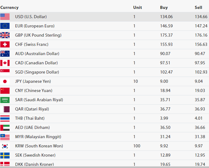 साथै साउथ कोरियन वन एक सयको खरिददर नौ रुपैयाँ ९२ पैसा र बिक्रीदर नौ रुपैयाँ ९७ पैसा, स्वीडिस क्रोनर एकको खरिददर १२ रुपैयाँ ८९ पैसा र बिक्रीदर १२ रुपैयाँ नौ पाँच र डेनिस क्रोनर एकको खरिददर १९ रुपैयाँ ८६ पैसा र बिक्रीदर १९ रुपैयाँ ९५ पैसा तोकिएको छ ।