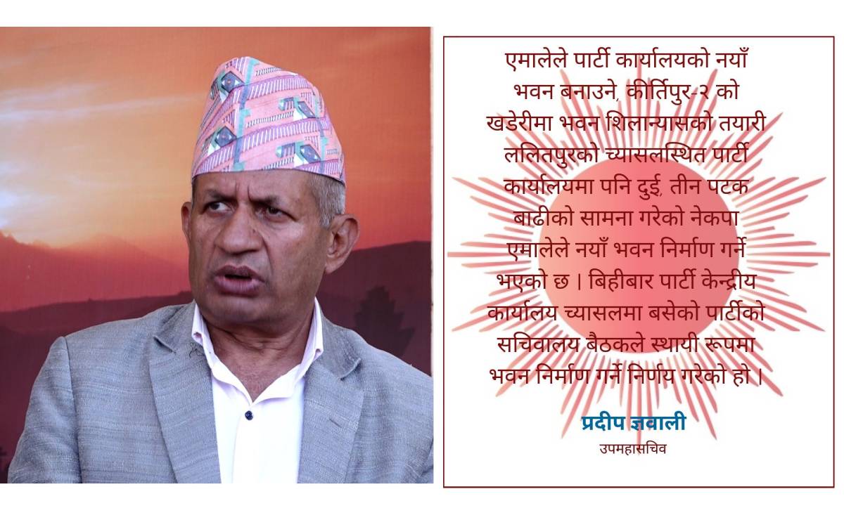 गत वैशाख ८ देखि १० गतेसम्म गोदावरीमा गरिएको राष्ट्रिय प्रतिनिधि परिषद् भेलामासमेत पार्टी कार्यालय भवन निर्माणका लागि रकम संकलन अभियान सञ्चालन गरिएको थियो।
