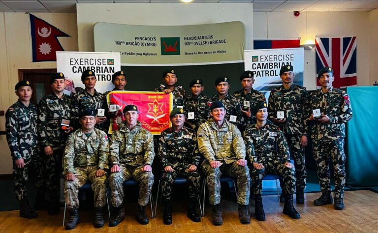 काठमाडौं । ३७ देशका सेनालाई पछि पार्दै नेपाली सेनाले ‘अभ्यास क्याम्ब्रियन गस्ती, २०२४’मा स्वर्ण पदक प्राप्त गरेको छ । बेलायतमा भएको अभ्यास क्याम्ब्रियन गस्तीमा नेपाली सेनाले उत्कृष्ट प्रदर्शन गर्दै स्वर्णपदक जितेको हो ।