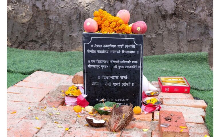 काठमाडौं । असोज २५ गते शुक्रवार । देश दसैँमय भइरहेका बेला अष्टमीको दिन कीर्तिपुरस्थित मैत्री नगरमा एउटा भव्य कार्यक्रमको आयोजना भयो । कार्यक्रम थियो, एमालेको केन्द्रीय कार्यालय भवनको शिलान्यास ।