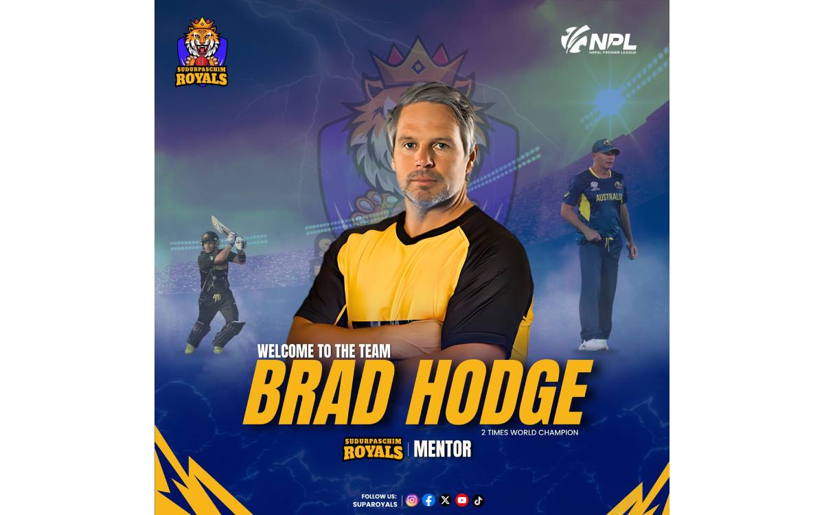 काठमाडौं । एनपीएलको पूर्वसन्ध्यामा सुदूरपश्चिम रोयल्सले अस्ट्रेलियाका पूर्व क्रिकेटर ब्राड हजलाई आफ्नो प्रमुख मेन्टर नियुक्त गरेको छ ।
