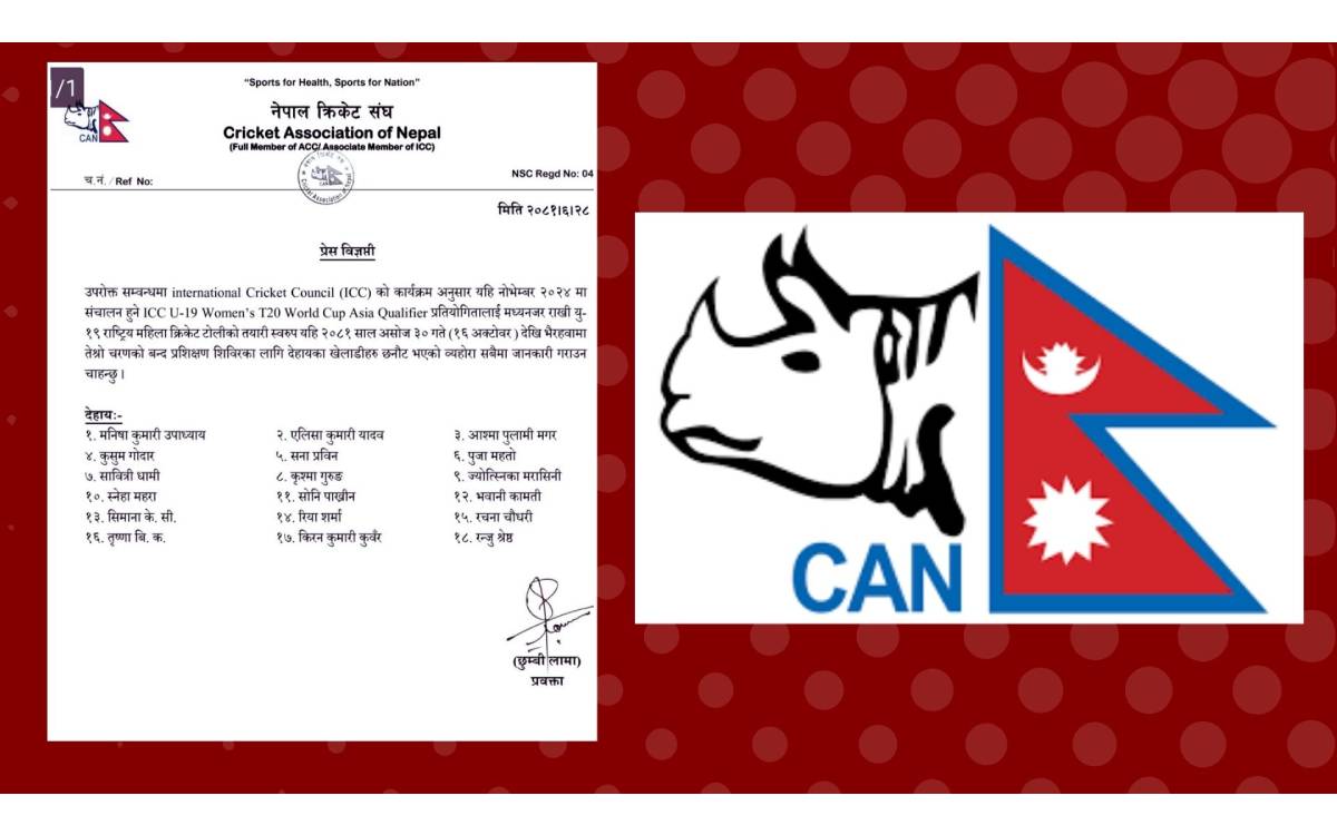 अन्तर्राष्ट्रिय क्रिकेट परिषद् (आईसीसी)को कार्यक्रमअनुसार आगामी नोभेम्बरमा सुरु हुने यू–१९ महिला टी–२० विश्वकप एसिया छनोटका लागि खेलाडी छनोट गरिएको हो ।