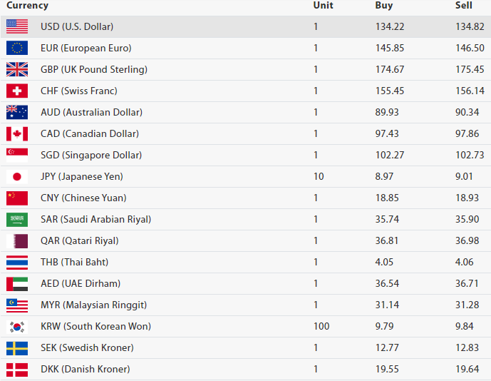 त्यसैगरी, युएई दिराम एकको खरिददर ३६ रुपैयाँ ५४ पैसा र बिक्रीदर ३६ रुपैयाँ ७१ पैसा, मलेसियन रिङ्गेट एकको खरिददर ३१ रुपैयाँ १४ पैसा र बिक्रीदर ३१ रुपैयाँ २८ पैसा रहेको छ ।